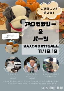 11/18.19でお得なSALEイベントを開催するので是非遊びに来てください😊