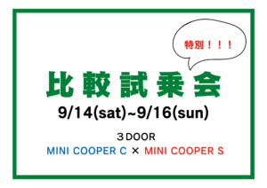 9/14~16の3日間限定でMINI COOPER C と MINI COOPER Sの特別試乗会を開催いたします!